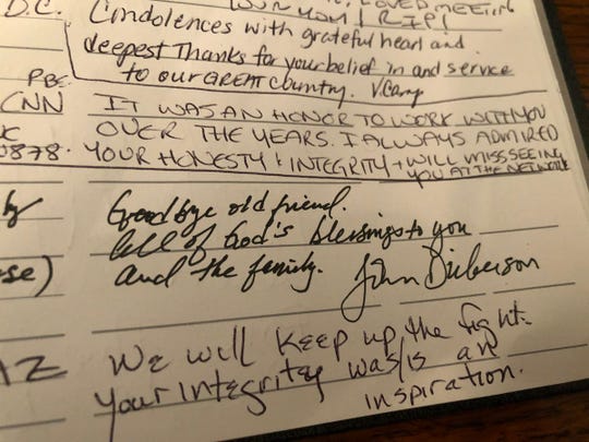 “You are already sorely missed,” a member of the U.S. Air Force wrote in the book. “I will tell my son about you and you unparalleled character. You are a true American hero.”